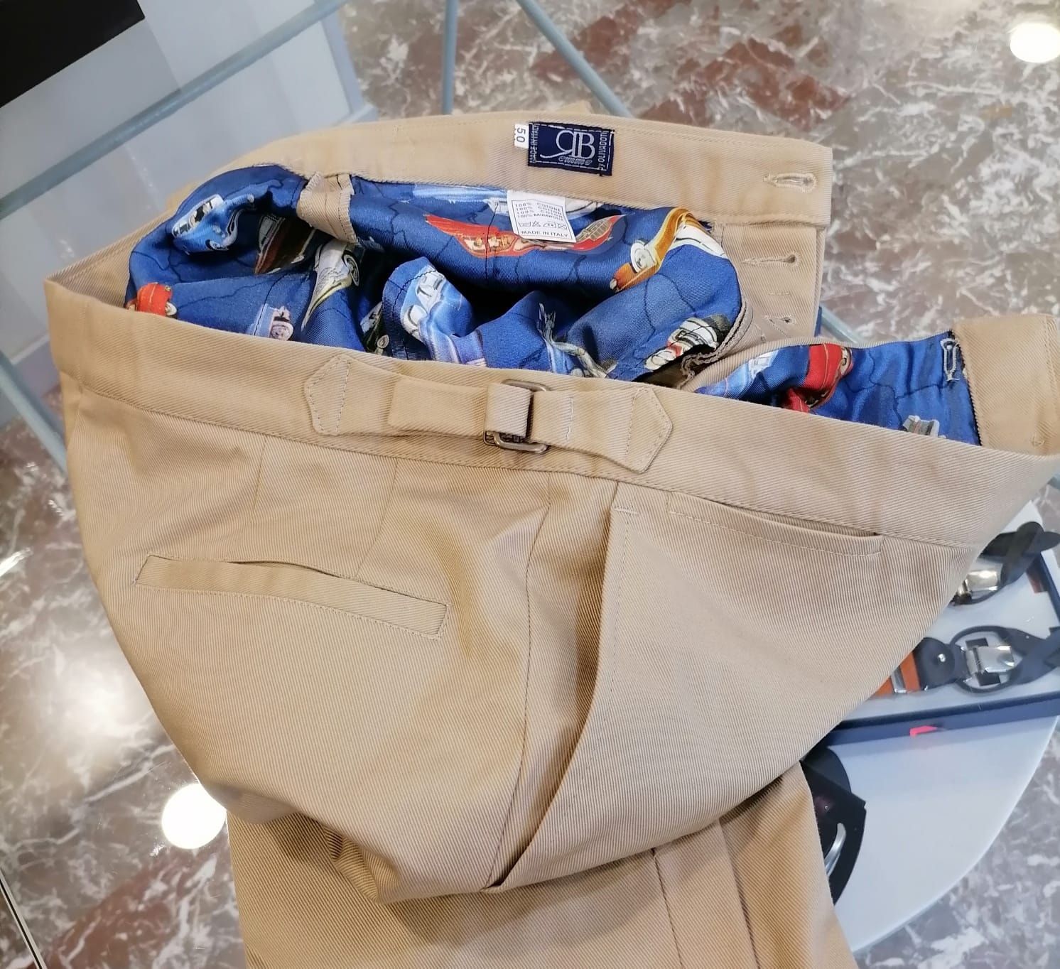 Il taglio della stoffa segna l'inizio tangibile della creazione di ogni pantalone su misura e rappresenta il passaggio successivo verso la realizzazione del capo finito.